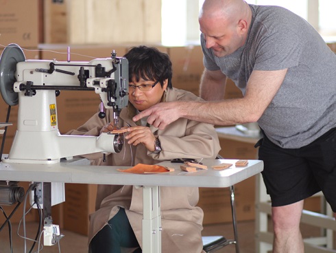La maquina de coser de brazo cilindrico creada por un grupo de trabajadores del cuero no sólo permite coser todo tipo de marroquinería, sino hacerlo a bajo costo.