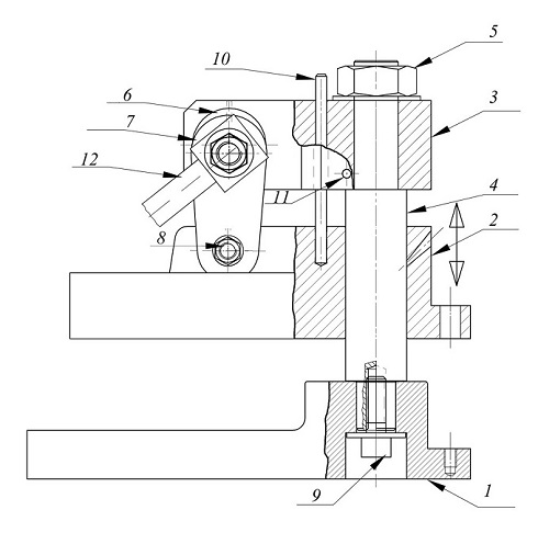 В некоторых случаях необходимо ограничить ход ударника высечного пресса для этого на прессе предусмотрен ограничитель хода. На ограничителе установлена гайка путем поднимания и опускания которой мы ограничиваем опускание ударника.