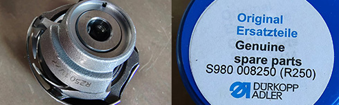 10. Using genuine DURKOPP # S980 008250 R250 Rotary Hook & Bobbin Case as standard hook OR the XXL hook +40% capacity.
