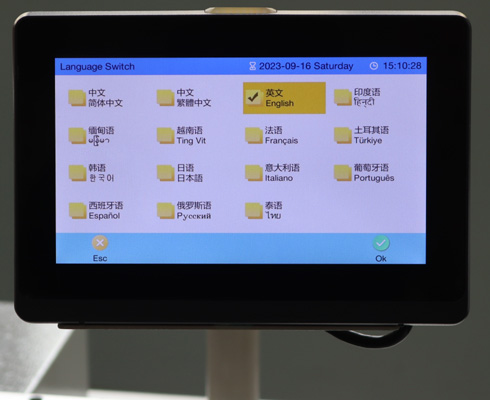 5. With the handy controls on the operation panel, the user can easily select language (15 different languages), sewing patterns, change sewing speed, set the bobbin thread counter, and store cycle sewing programs in memory.