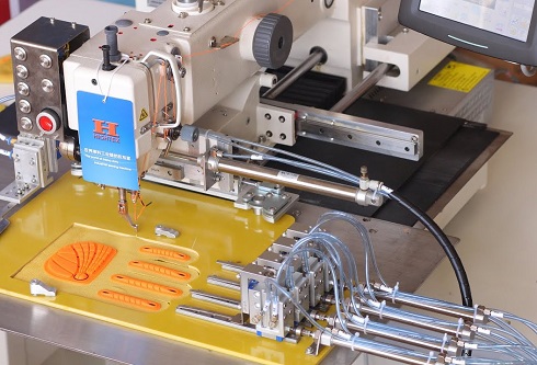It is custom made automatic sewing machine for stitching the rubber TPR on back palm of gloves. One worker can operate 2 automatic safety glove sewing machine at same time, great for labor saving!!! No need to hold the protecting rubber TPR by hand during the sewing operation, working at Absolute Safety!! Click here for video on YouTube
