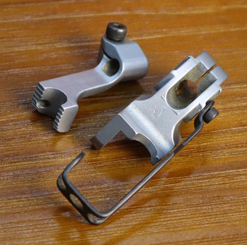205F02 Double toe saddlery presser foot sets: curved design of outside double toe presser foot allows closer stitching around edge of hardware, ideal for sewing halters, bridles and harnesses.