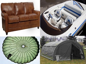 Applications: furniture upholstery, automotive upholstery/car interiors, leather sofas, fabric sofas, shoes, jeans, jumping castles (bouncy castles), car seats, safety belts, lifting slings, container bags, boat sails, military parachutes, tents, awnings, lorry curtain sidings, handbags, camping goods and general canvas work etc.