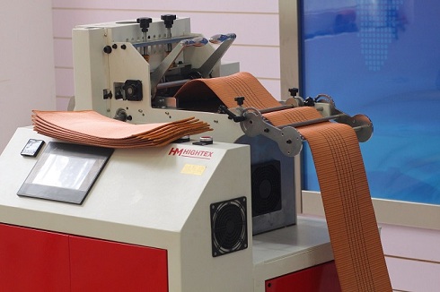 828BM-E300 Automatic hot knife webbing cutting, measuring, marking and stacking machine for the production of lifting slings