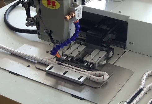 Also we custom made heavy duty bar tacking machine for stitching rubber ropes used in safety equipment. The challenge to stitch this type rope is the extremely toughness of rubber. We have special technology for sewing 10-16mm (diameter) tough rubber ropes without skipped stitch and thread break.